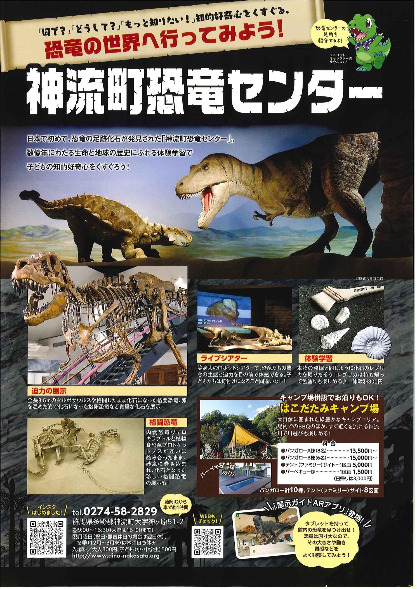 4月下旬~GWの体験イベントについて(恐竜センター) 更新日:2026年04月16日 ページID: 1331 神流町恐竜センターのGW等の体験イベントは下記リンクからご覧ください。 化石発掘「化石さがし体験」以外は予約不要で体験できます! 詳しくはコチラから この記事に関するお問い合わせ先 神流町恐竜センター群馬県多野郡神流町大字神ヶ原51-2電話:0274-58-2829HP:https://dino-nakasato.org/